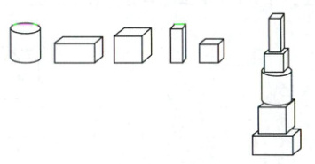 - 第一个物体:由两个圆柱、一个长方体和一个正方体组成,与第一组积木形状匹配,所以第一个物体与第一组积木相连。