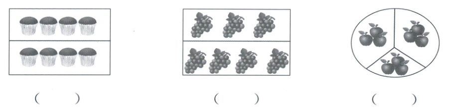 一、下图的分法中,是平均分的画“√”,不是平均分的画“×”。(3 分)
