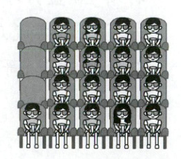 3. 科学课上,李老师为了开阔孩子们的视野,拓展大家的知识面,准备组织二(1)班的所有小朋友观看科幻电影。小朋友们观看电影时的座位情况如下,二(1)班一共有多少个小朋友?(6 分)