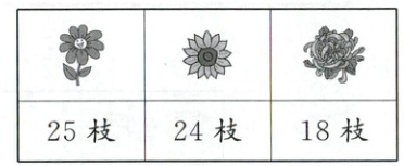 25÷5=5(束) 24÷3=8(束) 18÷2=9(束) 5<8<9,最多可以扎5束。