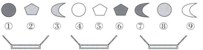 3. (开放性题目)把下列图形按你的想法分类,将图形的序号填写在下面的 3 个筐里。