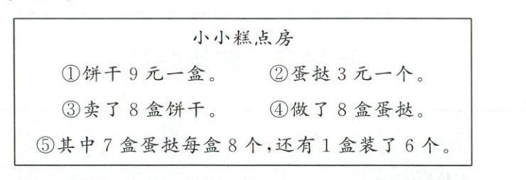 (1) 饼干一共卖了多少钱?要解决这个问题,可以选择的信息是