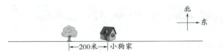 小熊家在小狗家的东面400米处,小兔家在大树西面200米处。