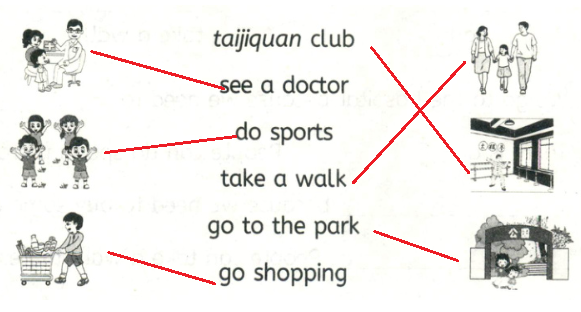 三、将图片与对应的短语连线。