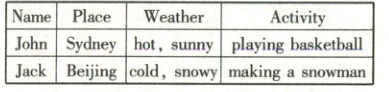 John is in a big park in Sydney. It's hot and sunny today. He is playing basketball with his new friends. His best friend Jack lives in Beijing. The weather in Beijing is cold and snowy now. Jack is making a snowman with his brother. Their dog runs in the park.