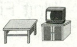 ) 1. —What is in the room?—There is a desk beside the TV.