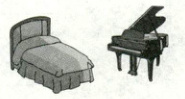 ) 5. —What is in the room?—There is a bed behind the piano.