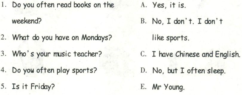 1. I have a cooking class. 我有一节烹饪课。2. Do you often read books in this park? 你经常在这个公园里看书吗?3. What do you have on Wednesdays? 星期三你有什么课?