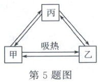 5. 水是人类环境的重要组成部分。水通过吸热、放热在固态、液态、气态三种状态间转化,如图所示。已知甲是水,则(