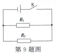 9. 如图所示,电源电压为 $ 3 \, V $,$ R_1 = 15 \, \Omega $,$ R_2 = 5 \, \Omega $,闭合开关 $ S $,下列说法正确的是(