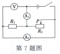 7. 如图所示,电源电压保持不变,闭合开关,当滑动变阻器的滑片 $ P $ 向右滑动的过程中(
