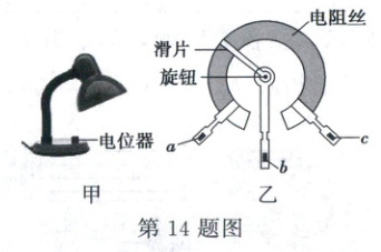 14. 如图所示,甲为亮度可调的台灯,电位器实际上是一个