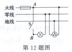 12. 如图所示是某家庭电路的一部分,下列说法正确的是(