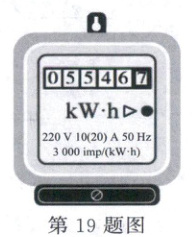 19. (2025·南京期末)小叶利用如图所示的电能表测量电热水器的电功率,他家同时工作的用电器总功率不能超过
