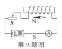 9. (2025·周口期末)闭合如图所示电路的开关,小磁针静止时指向如图,则下列说法错误的是(
