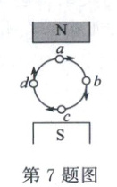7. 如图所示是闭合电路的一部分导体在两磁极间运动一周的情景。图中的小圆圈代表导体的横截面,箭头表示导体的运动方向,下列说法正确的是(