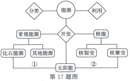 17. 如图是根据初中物理能源的有关内容绘制的知识结构图,线条表示知识间的逻辑联系。据此回答下列问题。