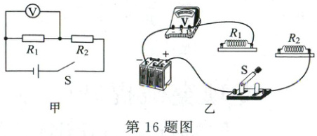 16. (5分)(2022·安顺中考)请按图甲所示的电路图,将图乙中的实物电路,用笔画线代替导线完成电路连接。(连接时导线不交叉)