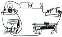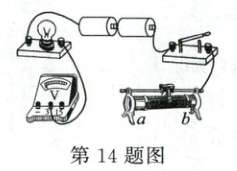 14. (5分)在如图所示的电路中,有两根导线尚未连接,请用笔画线代替导线连接电路,要求:电压表测灯泡两端的电压,滑动变阻器的滑片向$a$端移动时灯泡变亮。