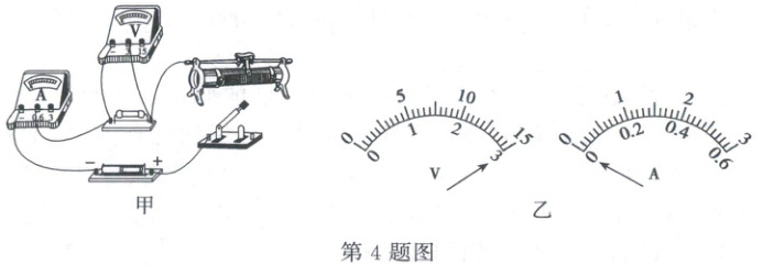4. (8分)在"探究电流与电压的关系"的实验中,电源是两节新干电池,电阻R的阻值为5Ω。