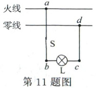 11. (5分)家里一个电灯突然熄灭,用测电笔分别测试电路中的a、b、c、d四点(如图所示),只有测a点时氖管发光,若电路中只有一处故障,则故障可能是(