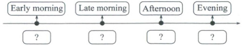 )19. Read the following events and put each event in the right box on the time line. Which one is right?①Bingo goes to the sheep's house and leads them to the fields.