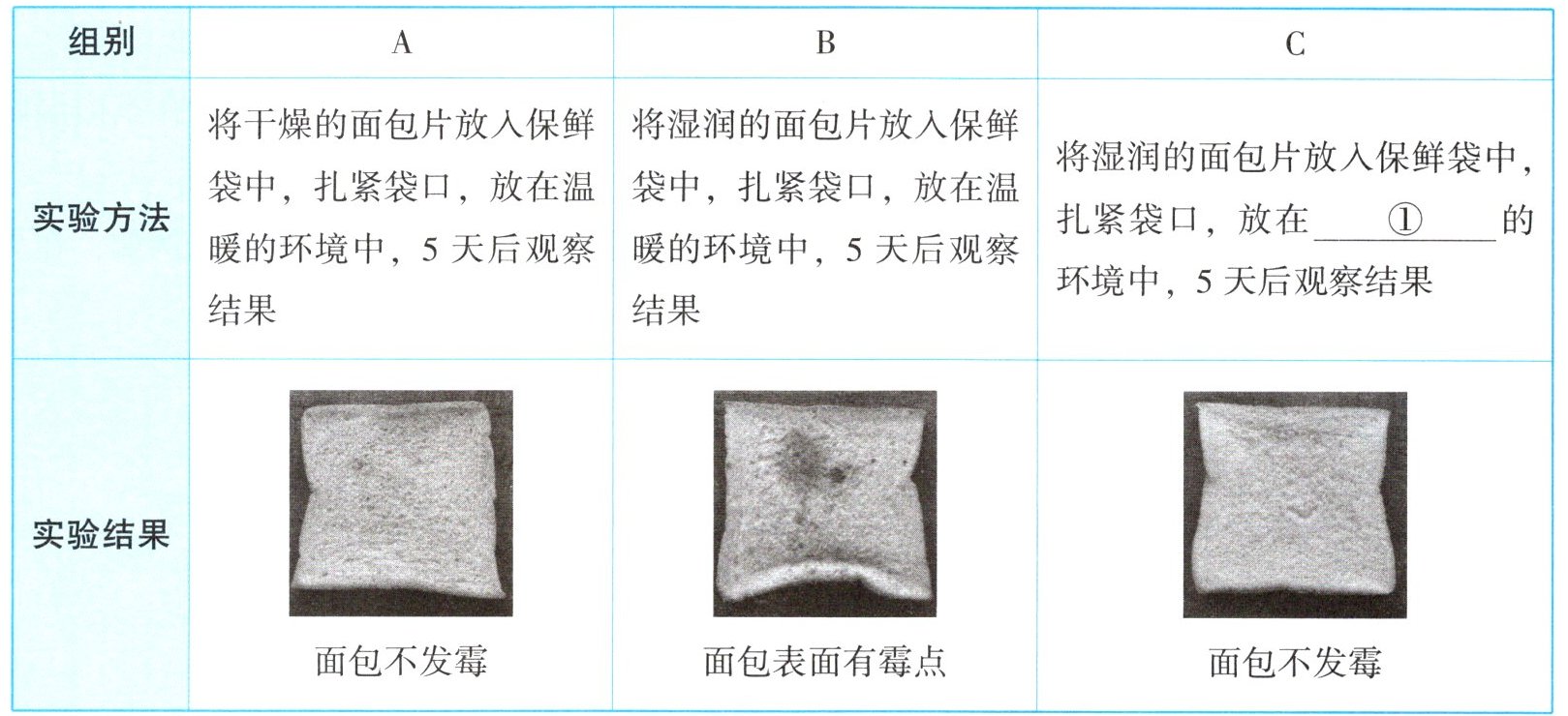 。(2)为了探究温度对霉菌生活的影响,兴趣小组设计了 C 组实验与