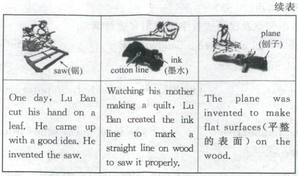 )2. How did Lu Ban invent the saw?[A] He got the idea from marking a straight line.
