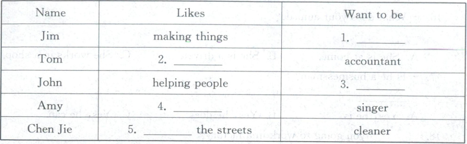 1. worker 2. math 3. policeman 4. singing 5. cleaning