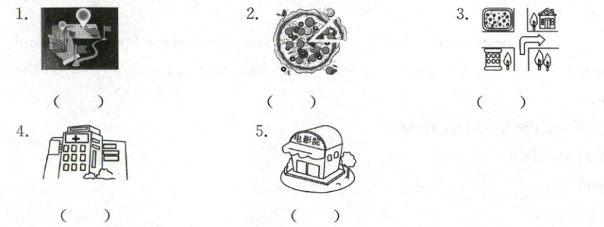 far from here?4. Is there a hospital near the cinema? (作肯定回答)