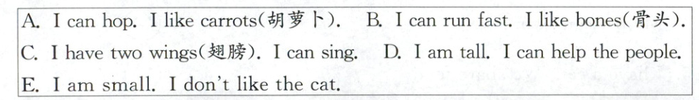任务一:3 2 1 4 任务二:1. fish 2. swim 3. big 4. rabbit 5. nice 任务三:画一幅家人和动物友好相处的图画。参考答案(答案不唯一)