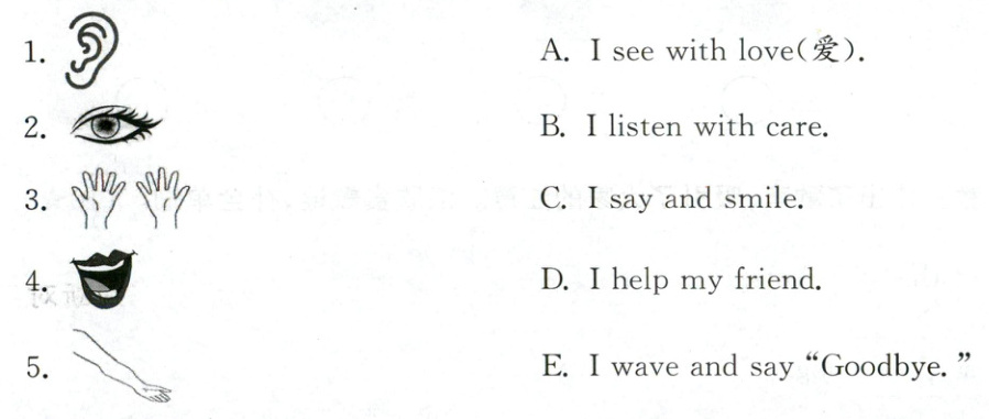 同学们来到了生物实验室。他们发现,我们的身体部位也是会说话的。请你读一读,连一连吧! (10★)