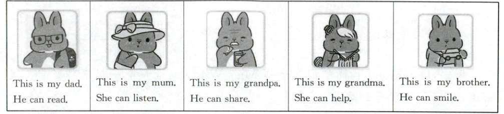 )2. Rebecca's family has 7 people.任务三:你最喜欢的家庭成员是谁?快来画一画,并用英语和同学交流一下吧!______