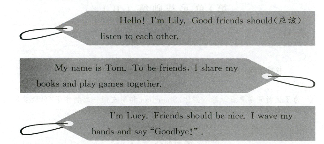 手册的最后一页是“友谊心愿卡”,阅读同学们在贴纸上的友谊寄语,挑战完成下列任务吧!(10★)