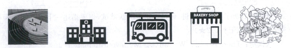 二 社区设计了文化长廊向大家介绍便民设施。听一听,用数字1至5为下列图片标序号。(10★)
