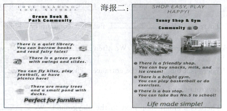 )4. Dongdong likes reading. So he prefers(更喜欢) the second community.(