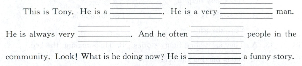 1. firefighter 2. nice 3. busy 4. helps 5. telling
