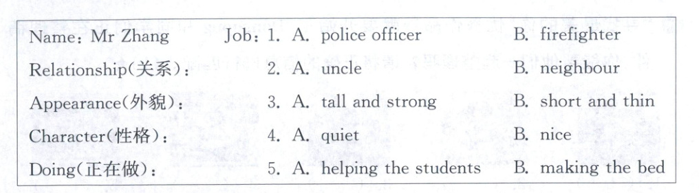 张叔叔是 Dongdong 最敬佩的人。请听下面这段话,并圈出与张叔叔相关信息的序号吧!(10★)