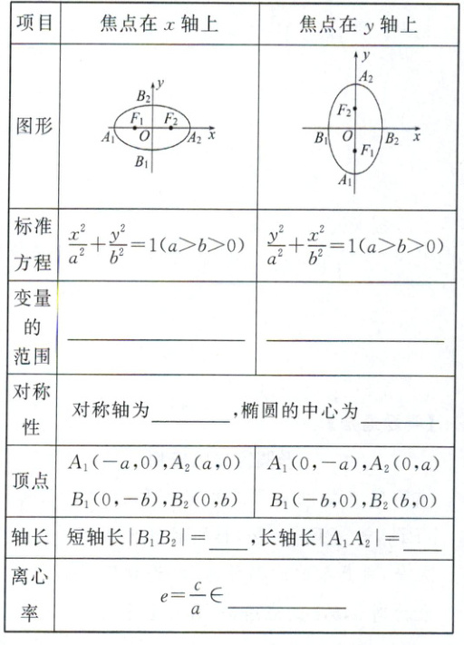 问题1. 观察下图中椭圆$\frac{x^{2}}{a^{2}}+\frac{y^{2}}{b^{2}} = 1(a > b > 0)$的形状.