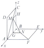 因为$|CM|=|BN|=a$,所以$|CH|=|MH|=|BG|=|GN|=\frac{\sqrt{2}}{2}a$,所以以B为原点,以BA,BE,BC所在的直线分别为x轴、y轴、z轴,建立如图所示的空间直角坐标系$B - xyz$,则$M(\frac{\sqrt{2}}{2}a,0,1-\frac{\sqrt{2}}{2}a)$,$N(\frac{\sqrt{2}}{2}a,\frac{\sqrt{2}}{2}a,0)$.