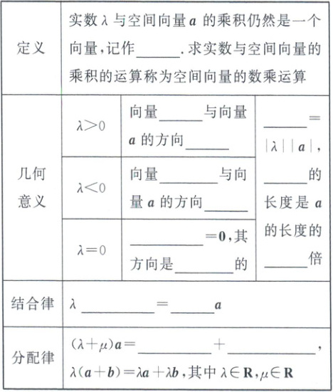 (2)$\lambda\boldsymbol{a}$ $\lambda\boldsymbol{a}$ 相同 $\lambda\boldsymbol{a}$ $|\lambda|$ $\lambda\boldsymbol{a}$ 相反 $\lambda\boldsymbol{a}$ 任意