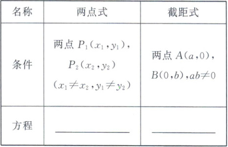 $\frac{y-y_1}{y_2-y_1}$=$\frac{x-x_1}{x_2-x_1}$ $\frac{x}{a}$+$\frac{y}{b}$=1
