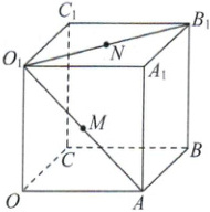 则$\overrightarrow{OM}=\frac{1}{2}\boldsymbol{i}+\frac{1}{2}\boldsymbol{k}=(\frac{1}{2},0,\frac{1}{2})$,$\overrightarrow{ON}=\frac{1}{2}\boldsymbol{i}+\frac{1}{2}\boldsymbol{j}+\boldsymbol{k}=(\frac{1}{2},\frac{1}{2},1)$,所以$\overrightarrow{MN}=\overrightarrow{ON}-\overrightarrow{OM}=\frac{1}{2}\boldsymbol{i}+\frac{1}{2}\boldsymbol{j}+\boldsymbol{k}-(\frac{1}{2}\boldsymbol{i}+\frac{1}{2}\boldsymbol{k})=(0,\frac{1}{2},\frac{1}{2})$.