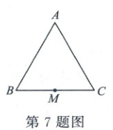 7. 如图,在 $ \triangle ABC $ 中,$ AB = AC = 17 $,$ BC = 16 $,$ M $ 为 $ BC $ 的中点,则点 $ M $ 到 $ AC $ 的距离为(