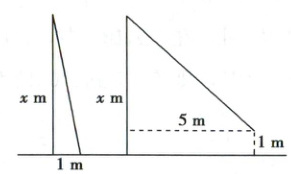 20. (10 分)学完勾股定理之后,同学们想利用升旗的绳子、卷尺测算出学校旗杆的高度。爱动脑筋的小亮设计了一个方案:如图,小亮将升旗的绳子拉直到末端刚好接触地面,测得此时绳子末端距旗杆底端 $ 1\ m $,然后将绳子末端拉直到距离旗杆 $ 5\ m $ 处,测得此时绳子末端距离地面的高度为 $ 1\ m $。如果设旗杆的高度为 $ x\ m $(滑轮上方的部分忽略不计),求 $ x $ 的值。
