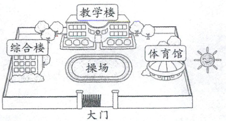 1. 学校的东面是体育馆,南面是(
