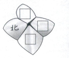 7. 一张正方形纸,几番折叠,就形成一个神奇的方向罗盘,在玩耍中,我们便不知不觉建立了方向感。请你根据图中的提示,填写其他三个方向。