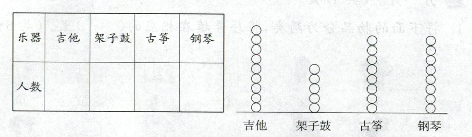 3. 根据二(1)班学生喜欢的乐器情况完成下面各题。