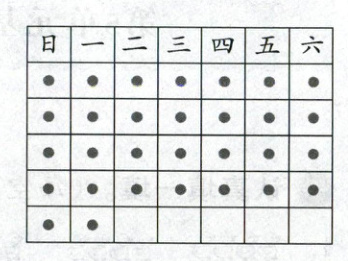 2. 如图是晓林上个月的跑步计划表,●表示已经跑了的日期。他一共跑了多少天?(4★)