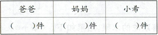 2. 三人的衣服各有几件?填一填,涂一涂。(6★)